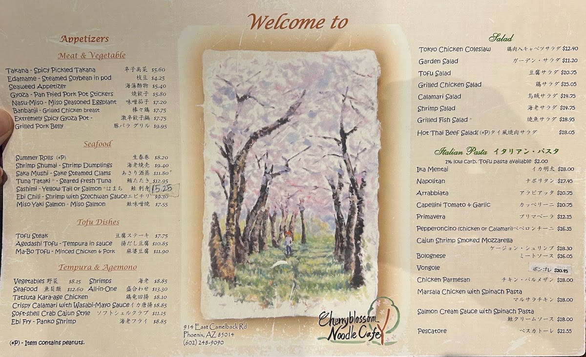 Welcome to Cherryblossom Noodle Cafe, a delightful haven for lovers of Asian fusion cuisine located at 914 E Camelback Rd, Phoenix, AZ. This cozy restaurant has become a local favorite, offering an inviting menu that marries the vibrant flavors of Japanese and Thai dishes, among others. Whether you’re in the mood for comforting bowls of ramen or want to savor the heartwarming essence of udon noodles, Cherryblossom Noodle Cafe has it all!
